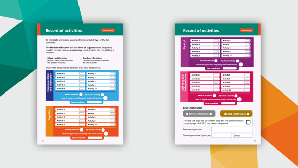 To support flexible delivery, selected documents are now available in interactive digital formats. These include evidence templates (such as witness statements, photographic evidence and observation records) and learner worksheets, including updated versions of ‘Module reflection’ and ‘My achievements’.